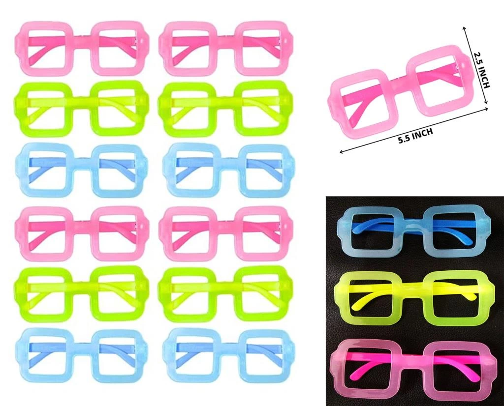 Fosforlu Kare Model Parti Gözlüğü Karanlıkta Yanan Gözlükler 12 Adet