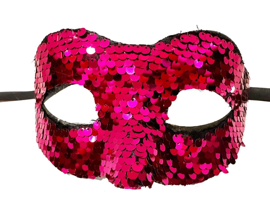 Fuşya Renk Payetli Pullu Parti Maskesi Balo Venedik