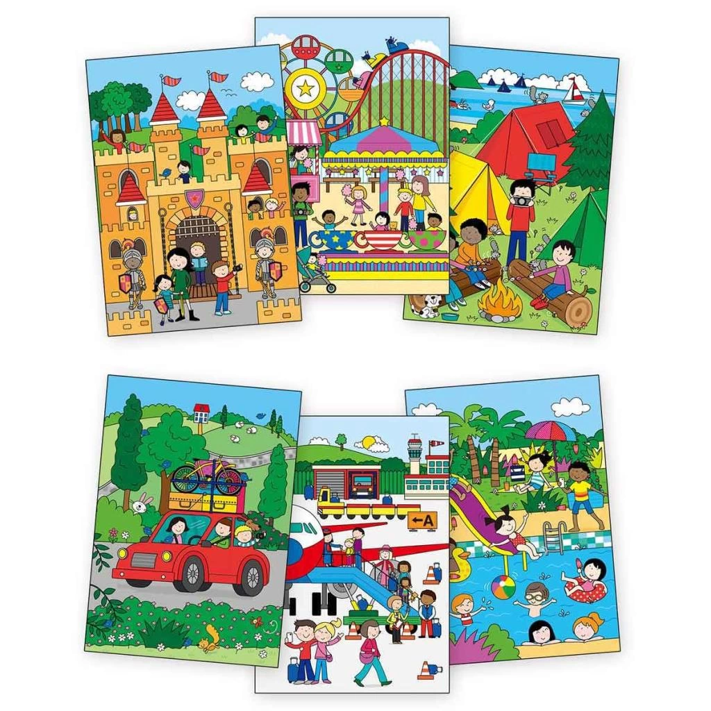 Tatil temalı resimlerdeki renkleri ortaya çıkarmak için kitabın üstünde yer alan “sihirli” kalemi kullan.