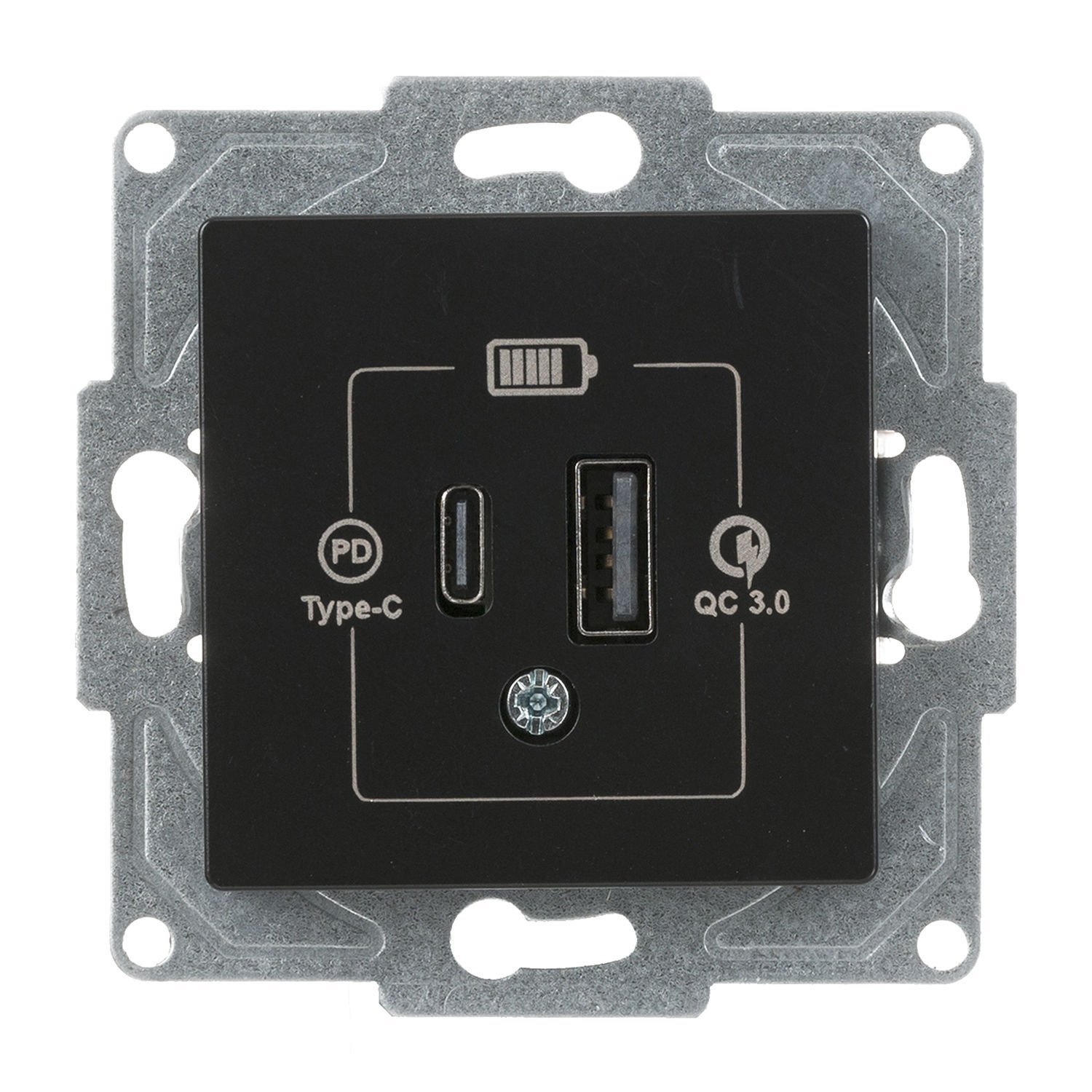 Günsan Eqona Metalik Siyah 2 Çıkışlı USB Şarj Prizi – 20W (Type C + Type A) Vidalı