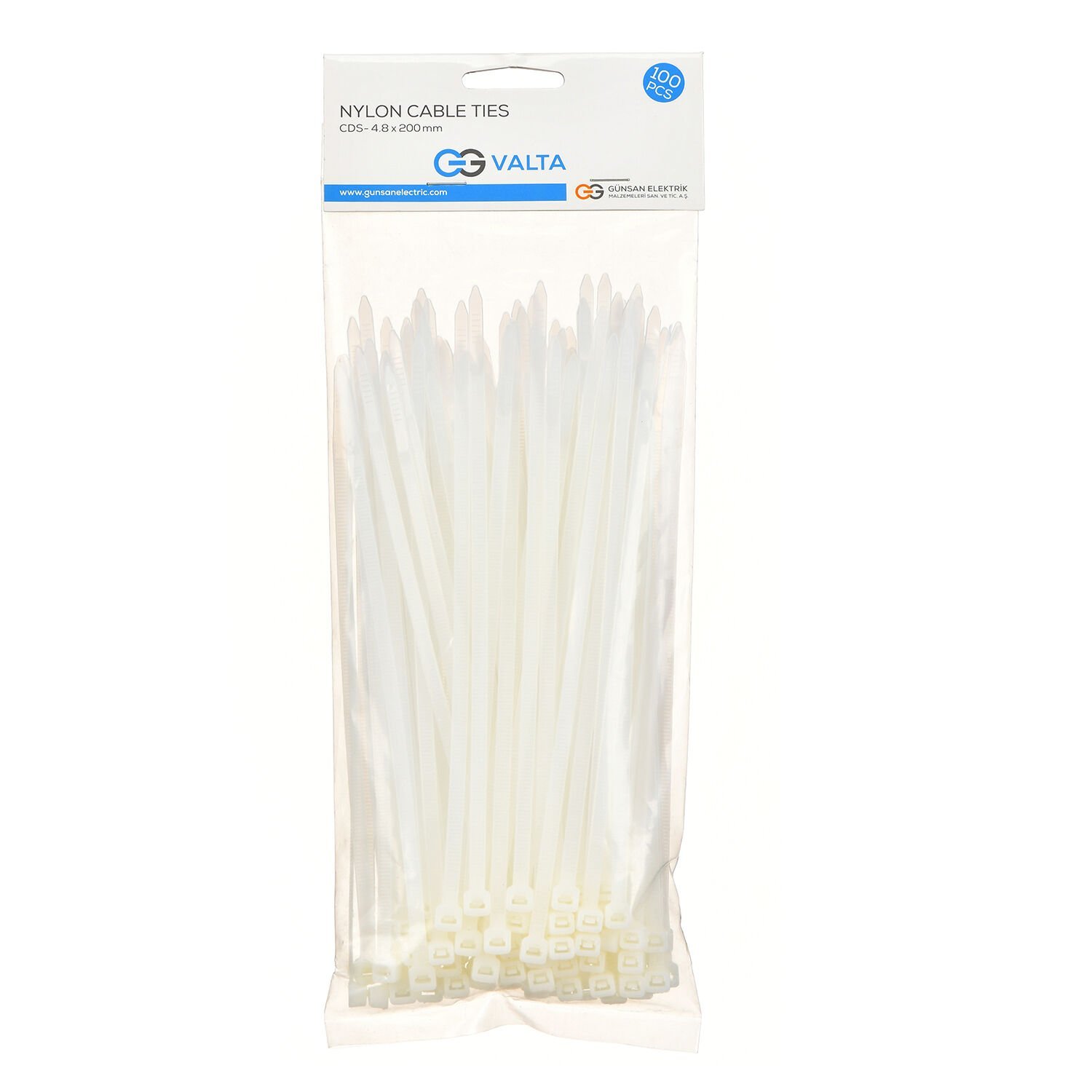 | Günsan Valta Kablo Bağı T8 Beyaz (20cm x 4.8mm) x100 |