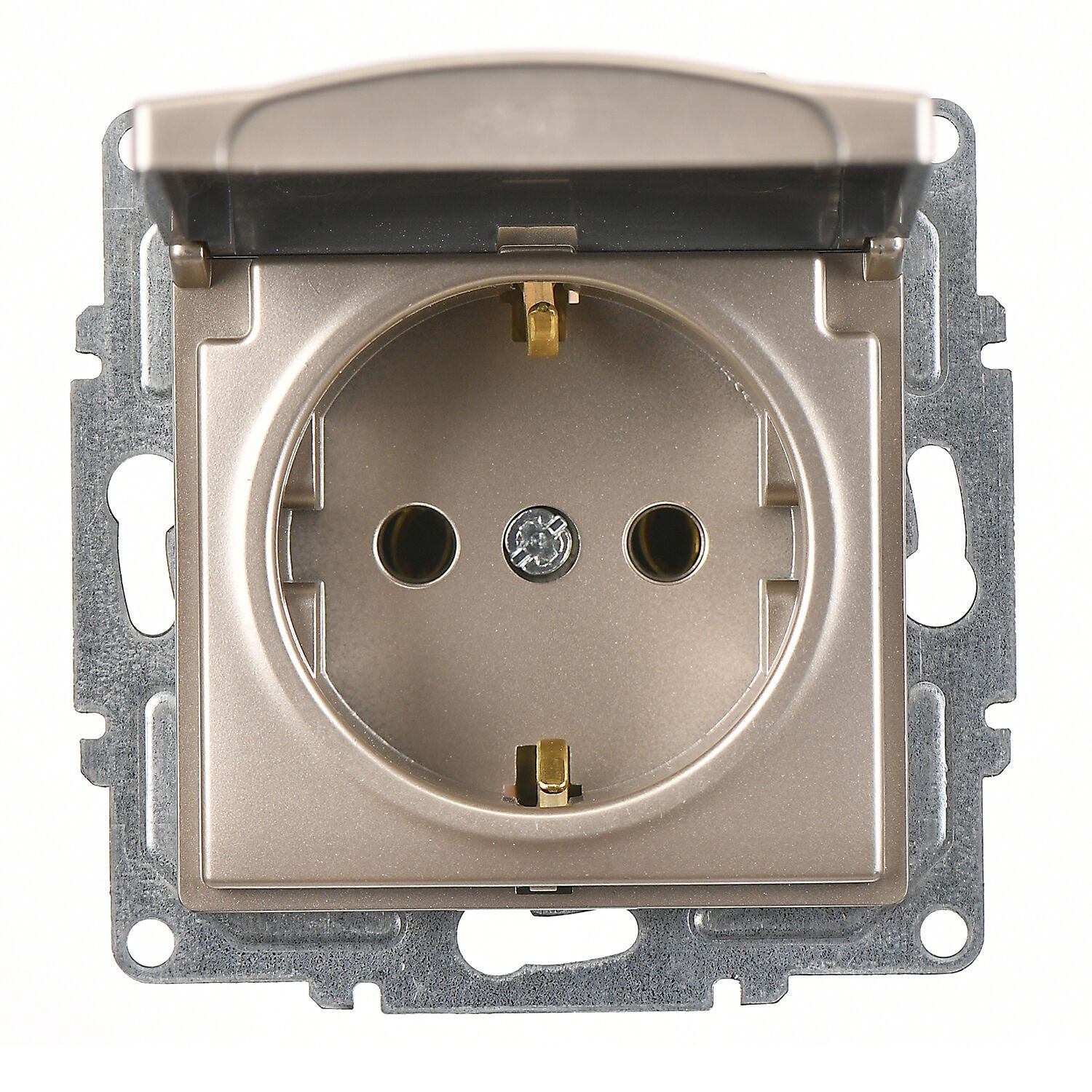 Günsan Visage Metalik Bej Kapaklı Topraklı Priz- 16A 250V – Klipsli