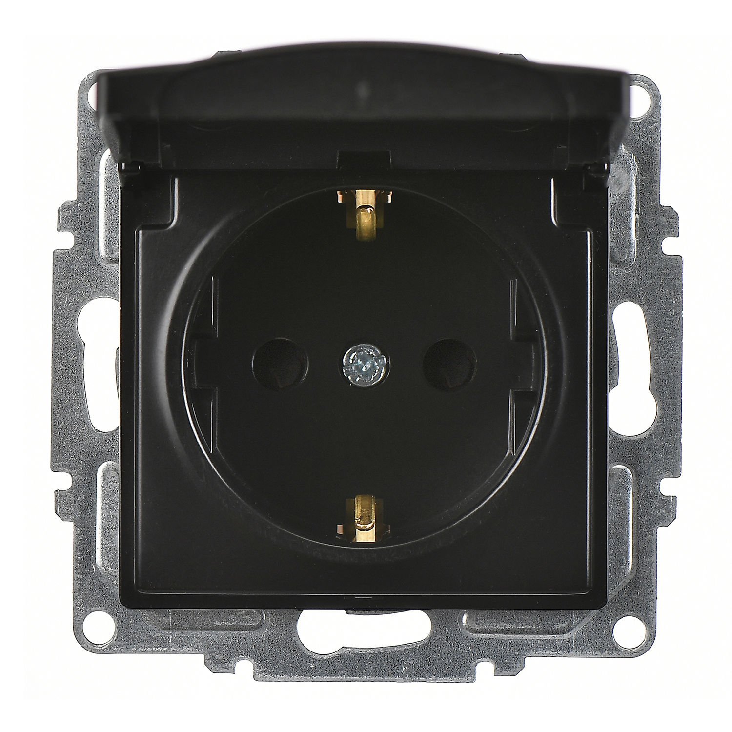 Günsan Visage Metalik Siyah Çocuk Korumalı Kapaklı Topraklı Priz – 16A 250V – Klipsli