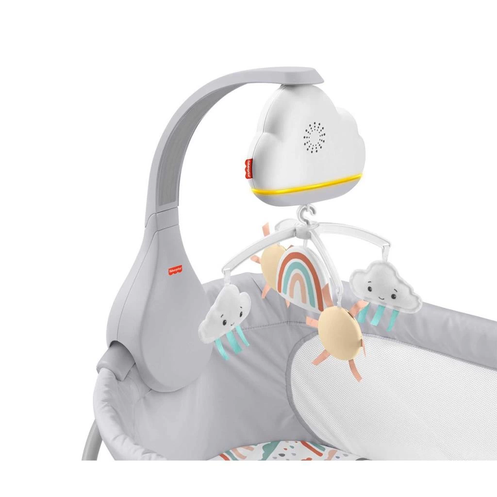 Fisher-Price® Mutlu Gökyüzü Dönencesinin bulut ve güneş şeklindeki asılabilen göz alıcı oyuncakları ve içerdiği 20 dakikalık çalma listesi, bebeğinizin rahatlayarak tatlı düşlere dalmasına yardımcı olur.