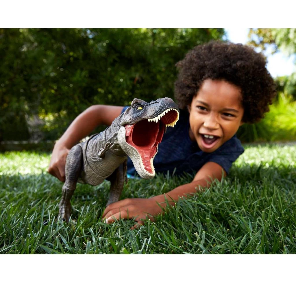 Jurassic World: Dominion, havalı mermersi bir tasarıma, hareketli eklemlere, gerçekçi seslere ve heyecan verici hareketlere sahip bu Güçlü Isırıklar Tyrannosaurus Rex™ figürüyle, macerayı ve heyecanı evinize getirir.
