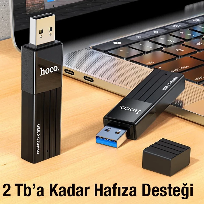 HOCO HB20 2in1 Hafıza Kart Okuyucu USB 2.0 Çevirici AdaptörDizüstü bilgisayarlardan, cep telefonlarından ve tabletlerden kolayca veri aktarımı yapmak için tasarlanmıştır.