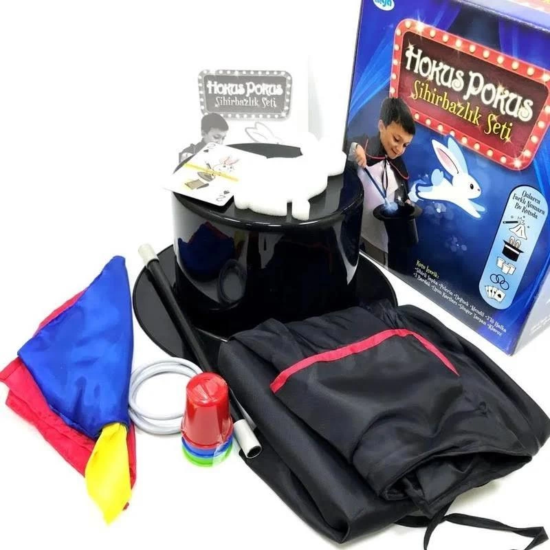 Kutu İçeriği: Sihirli Şapka, Pelerin, Değnek, Mendil, 3’lü Halka, 3 Adet Bardak, Oyun Kartları, Sünger Tavşan ve Oyun Kılavuzu.