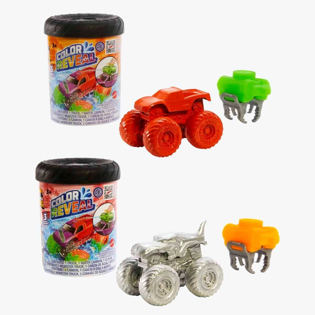Her varil tamburunun içinde bir adet 1:64 ölçekli Color Reveal Monster Truck ve bir klipsli su püskürtme tankı bulunur. İlk açıklama için namluyu suyla doldurun, kamyonu batırın ve su renk değiştirene kadar döndürün. Canavar Kamyonu ve dekorunu ortaya çıkarmak için dışarı çekin!