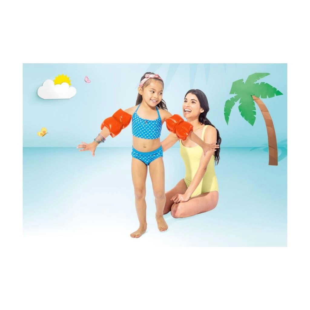 Çocuğunuz ilk kulaçlarını güven içerisinde 25×17 cm ölçülerine sahip Intex Çift Boğumlu Kolluk ile atsın.