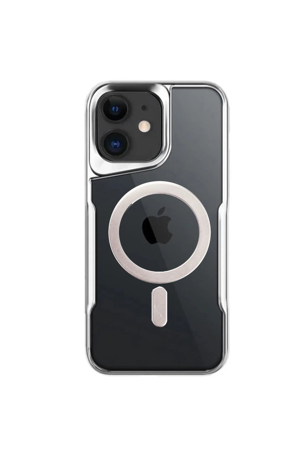 iPhone 12 Kılıf Boyi Magsafe Silikon Kapak – Gümüş-(5796)