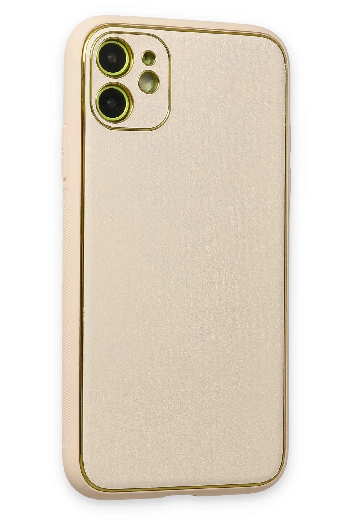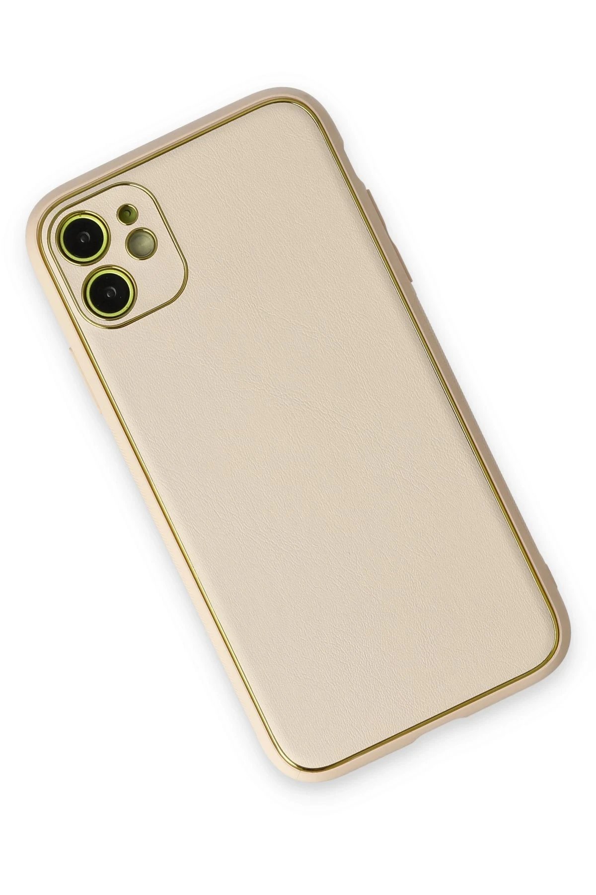 iPhone 12 Kılıf Coco Deri Silikon Kapak – Gold-(5796)