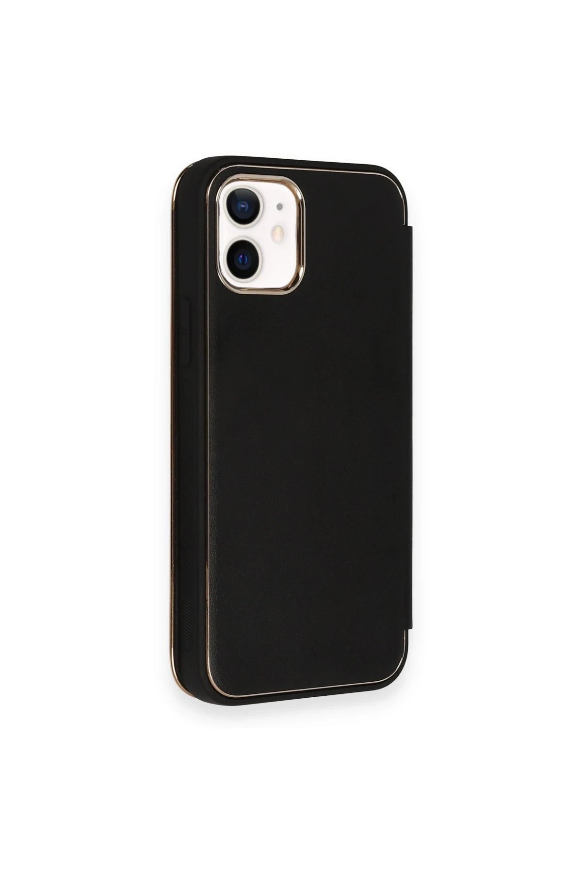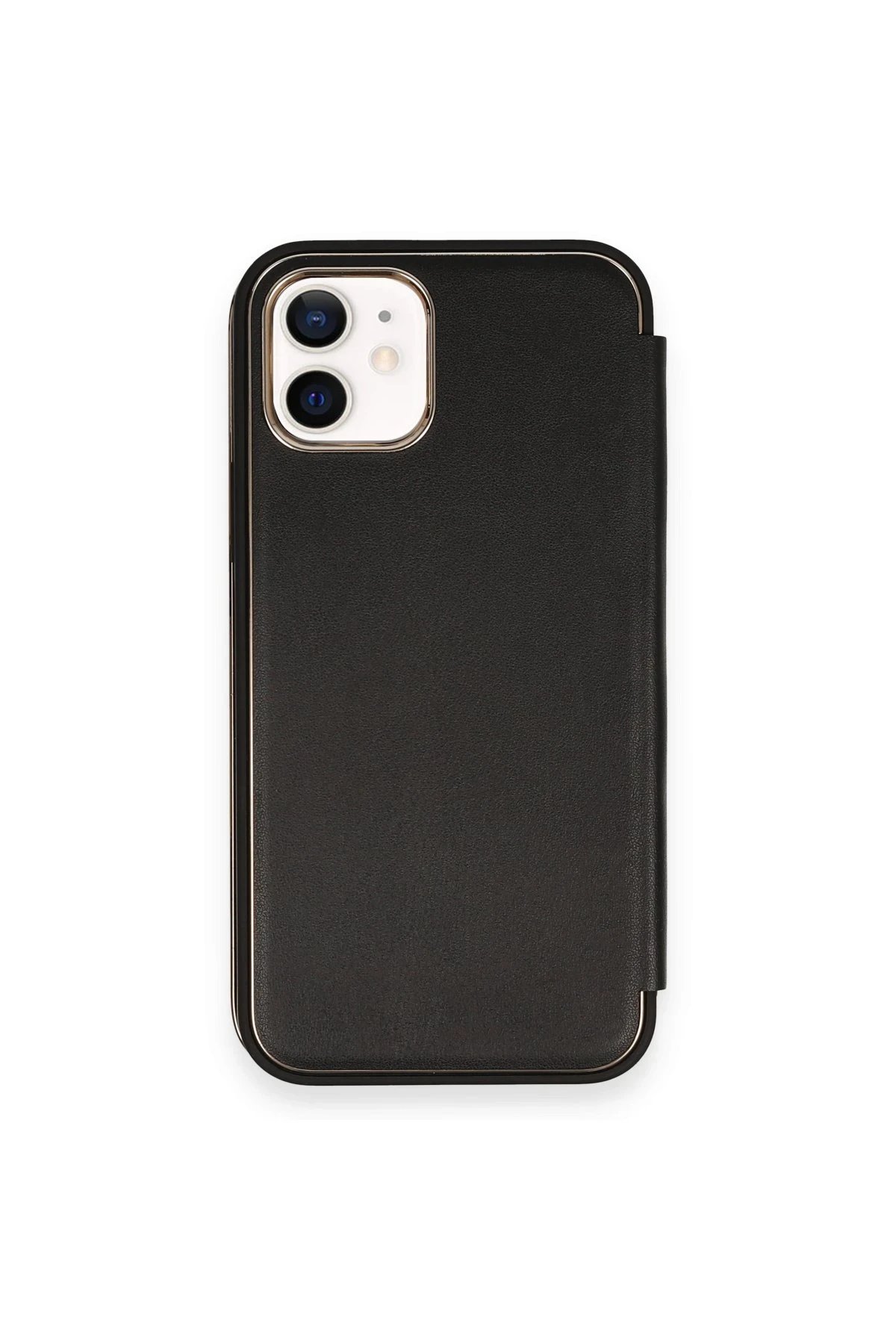 iPhone 12 Kılıf Dolpin Kapaklı – Siyah-(5796)