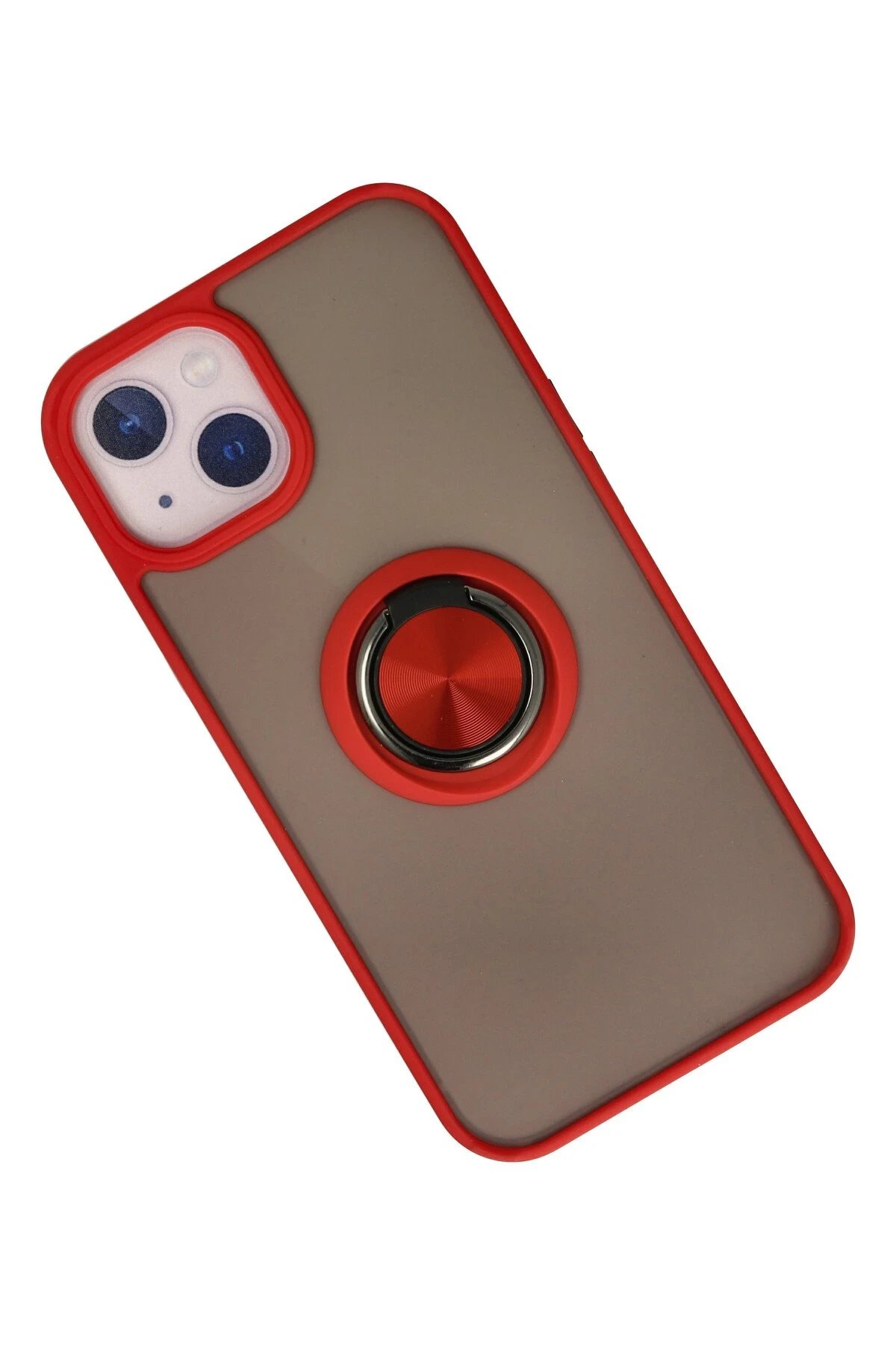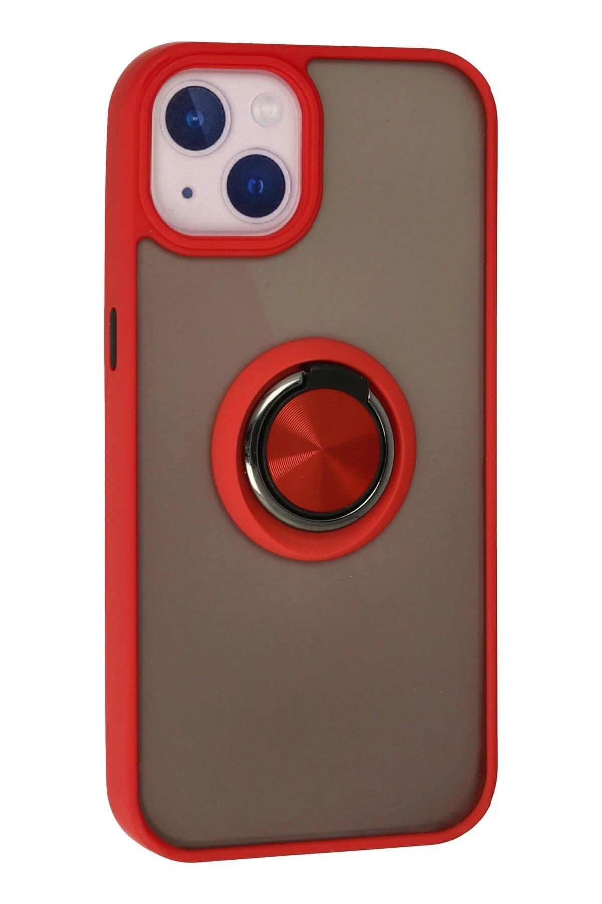 iPhone 13 Kılıf Montreal Yüzüklü Silikon Kapak – Kırmızı-(5796)