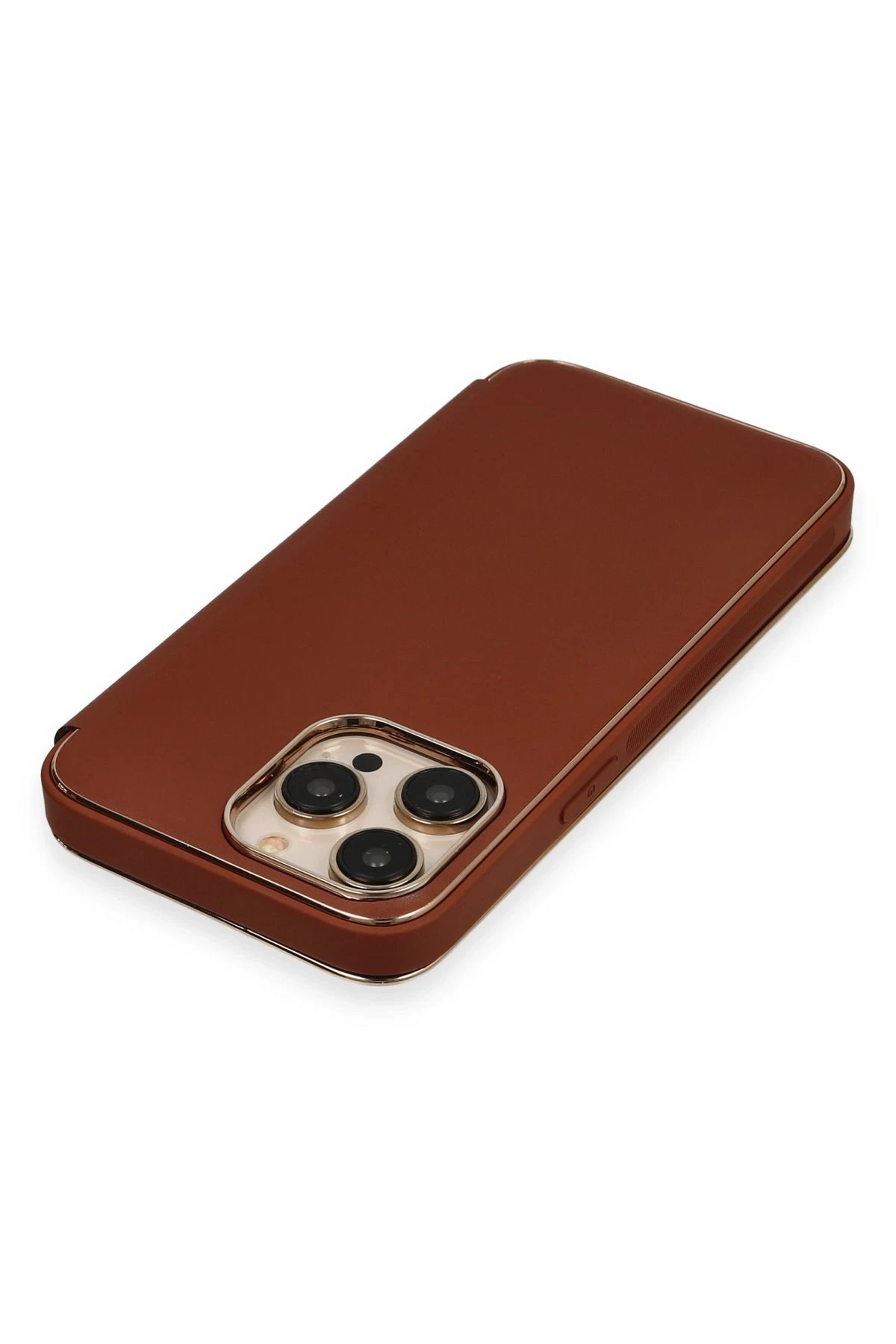 iPhone 13 Pro Max Kılıf Dolpin Kapaklı – Kahverengi-(5796)