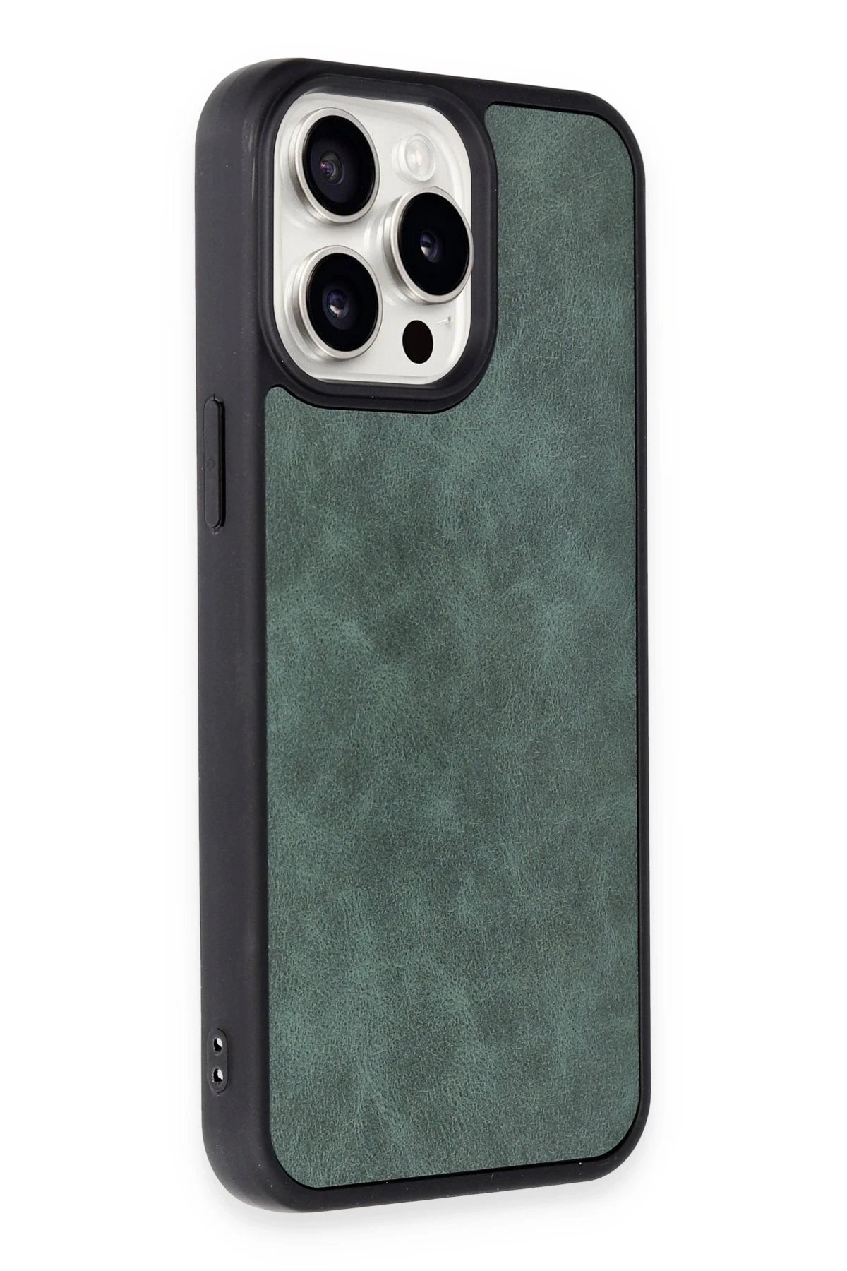iPhone 15 Pro Max Kılıf Aras Deri Kapak – Koyu Yeşil-(5796)