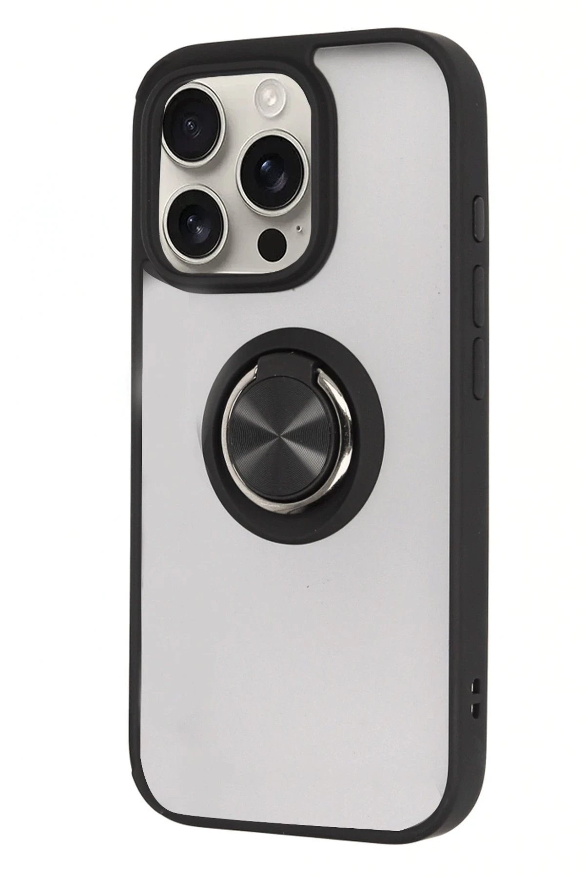 iPhone 16 Pro Kılıf Montreal Yüzüklü Silikon Kapak – Siyah-(5796)