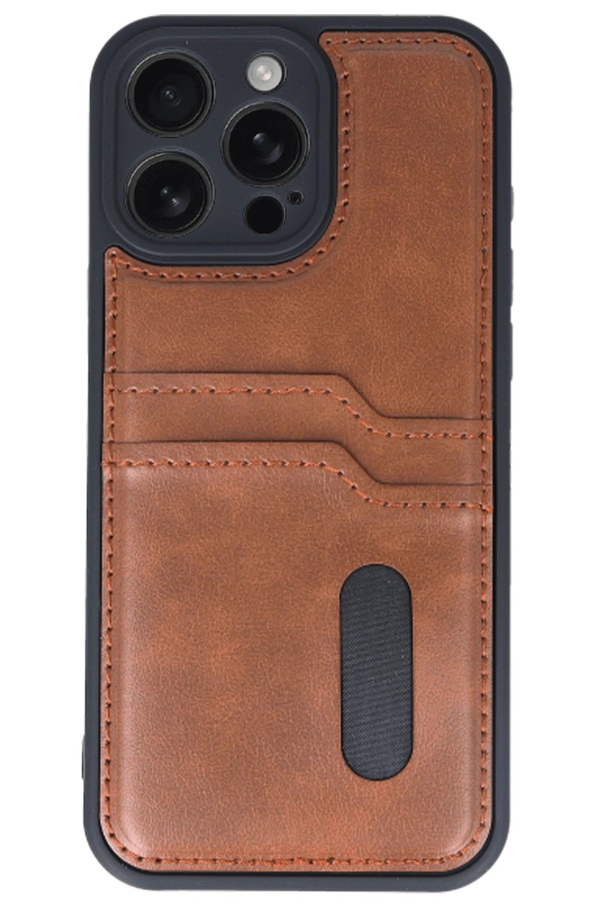 iPhone 16 Pro Max Kılıf Sara Kartvizitli Deri Kılıf – Taba-(5796)