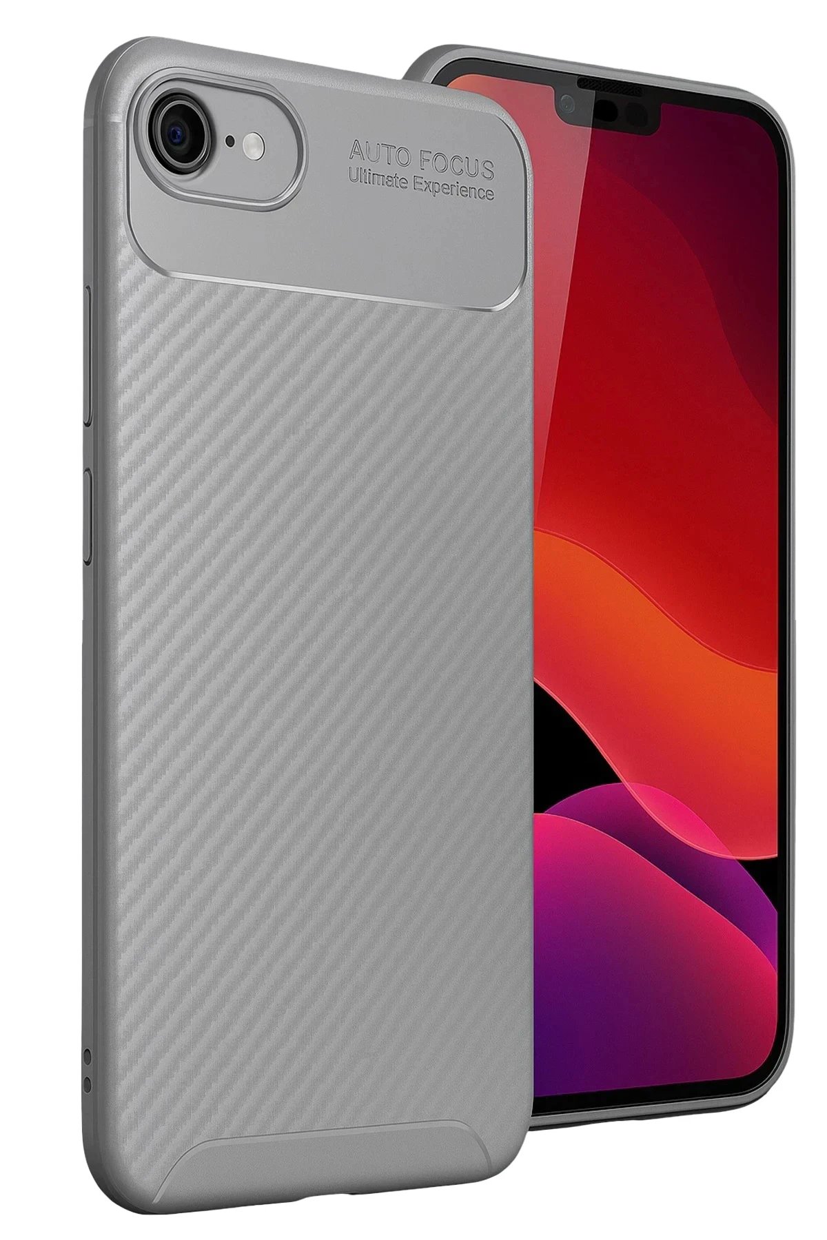 iPhone 16E Kılıf Auto Focus Karbon Kapak – Gri-(5796)