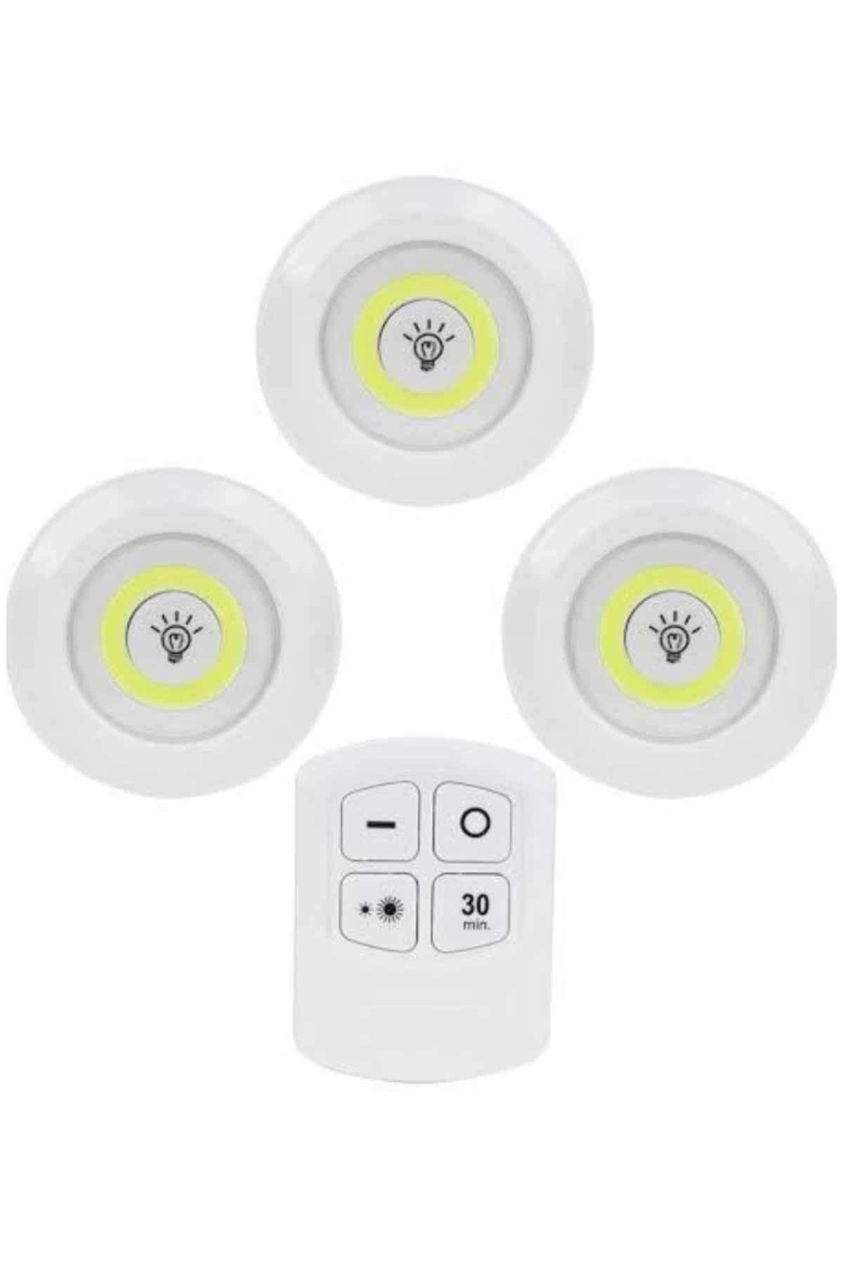Kablosuz Kumandalı LED Spot Lamba Seti | 3’lü Paket | Işık Ayarı, Zamanlayıcı, Kolay MontajEv içi aydınlatma ihtiyaçlarınıza pratik ve şık bir çözüm sunan bu kablosuz LED spot lamba seti, ergonomik tasarımı ve kullanıcı dostu özellikleriyle öne çıkar. Özellikle banyo, mutfak, gardırop içi ve koridor gibi alanlarda ekstra ışığa ihtiyaç duyduğunuz her yerde kullanıma uygundur. Minimal boyutlarına rağmen güçlü aydınlatma sunan COB LED teknolojisi sayesinde, hem enerji tasarrufu sağlar hem de göz yormayan bir ışık kalitesi sunar.Her spot, 3 adet AAA pil ile çalışır (piller dahil değildir), böylece prize ihtiyaç duymadan her yüzeye monte edilebilir. Ürünle birlikte gelen akıllı kumanda sayesinde, ışıkları uzaktan açıp kapatabilir, ışık şiddetini artırıp azaltabilir veya 30 dakikalık zamanlayıcı fonksiyonu ile otomatik kapanmasını sağlayabilirsiniz. Ayrıca, spotların üzerindeki tuşlar sayesinde manuel kontrol de mümkündür; böylece kumandaya erişiminiz olmasa dahi lambaları rahatça kullanabilirsiniz.Kumandanın kaybolmaması için özel olarak tasarlanmış duvara monte edilebilir haznesi, her zaman ulaşılabilir bir konumda sabit durmasını sağlar. Kurulum konusunda da kullanıcıya büyük kolaylık sunan ürün, çift taraflı yapışkan bantlarıyla birlikte gelir. Bu sayede vidalama ya da matkap gibi işlemlere gerek kalmadan, lambaları düz ve temiz yüzeylere saniyeler içinde sabitleyebilirsiniz.Set içerisinde 3 adet LED spot ve 1 adet kumanda bulunur. Fonksiyonel özellikleri, akıllı tasarımı ve kolay montajıyla bu LED spot seti; hem dekoratif hem de ihtiyaç odaklı aydınlatma çözümleri arayan kullanıcılar için ideal bir tercihtir.
