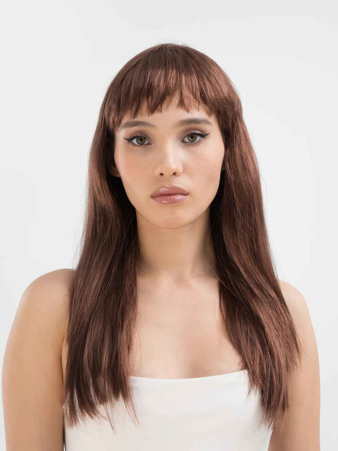 Kahverengi Uzun Düz Parti Peruğu Doğal Görünüm Ve Eğlenceli Kullanım