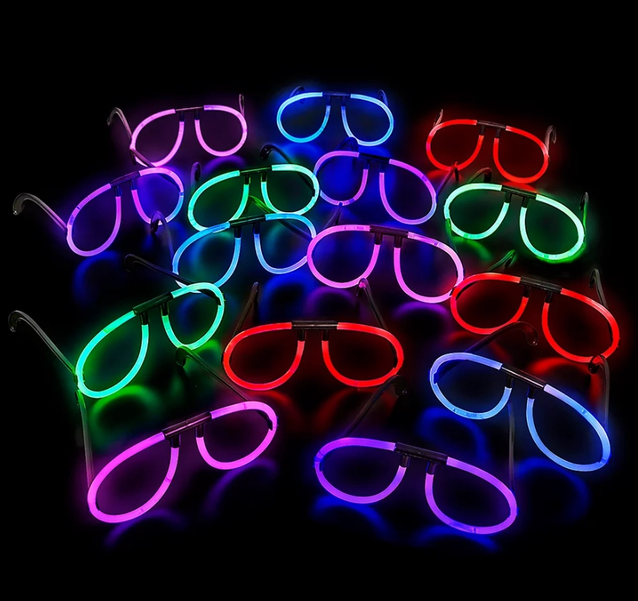 Malzemesi     :Plastik ( Gözlük kenarlarına monte edilen neonlu çubuklar sayesinde karanlıkta parlar, ışık verir. Glow ürünlerin ışık verme süreleri 12-24 saat arasında değişmektedir)