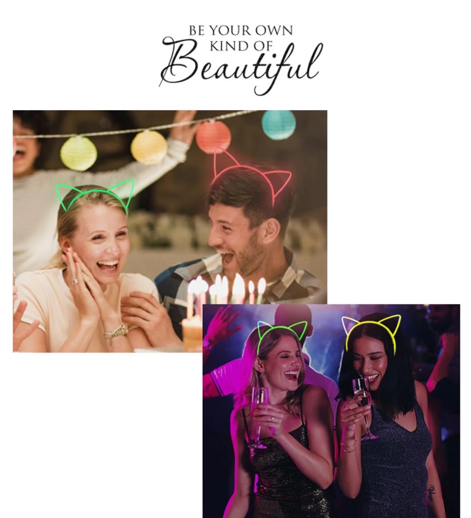 Karanlıkta Yanan Glow Kedi Kulağı Kedi Tacı Renkli