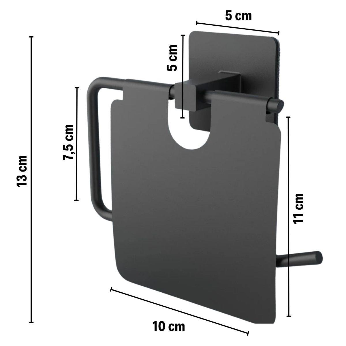 Kendiliğinden Yapışkanlı Siyah Paslanmaz Metal Kapaklı Tuvalet Kağıtlığı Aparatı