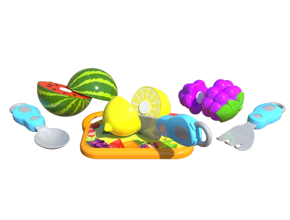 Her meyve 2 parçadan oluşur. Meyvelerin ortasındaki cırt bant sayesinde ürünler bir bütün olur. Kesmek için önce IML Baskılı Kesme tabagını meyvelerin altına koyunuz ardından kesmek istediginiz meyvenin ortasına yumuşak plastikli bıçagımızı koyup bastırdıgınızda meyveler 2 parçaya bölünür. Blister Vakum ambalajımız hava geçirmez üzerinde toz vs bulunmaz.