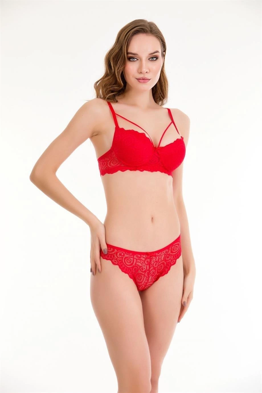 Kırmızı Dantelli Tek İp Detaylı Şık Sütyen Takım 19012