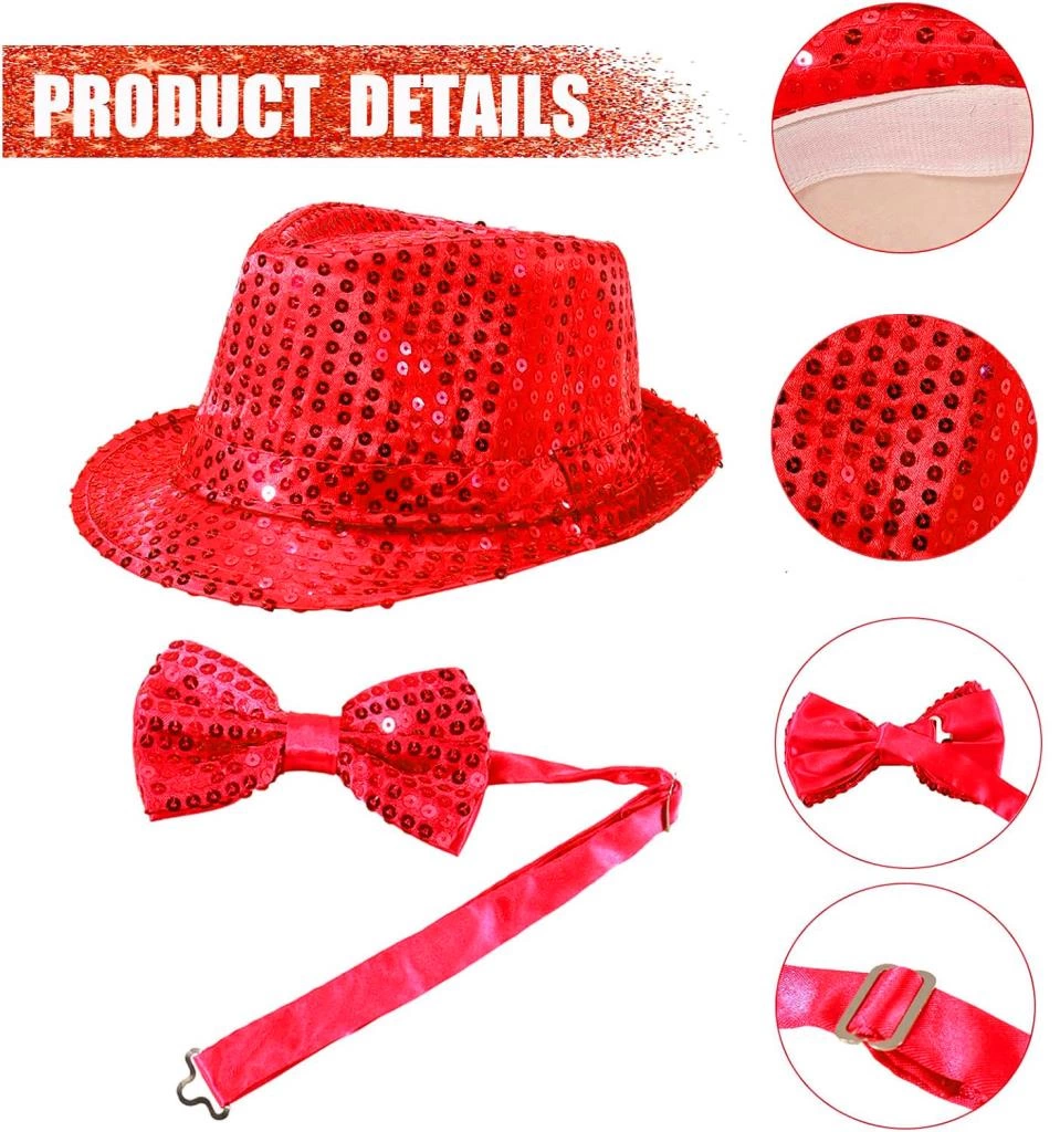 Göz alıcı bir tarz oluşturmak isteyenler için Kırmızı Payetli Şapka ve Papyon Seti tam size göre! Işıltılı tasarımıyla özel davetlerden temalı partilere kadar her ortamda fark yaratın.