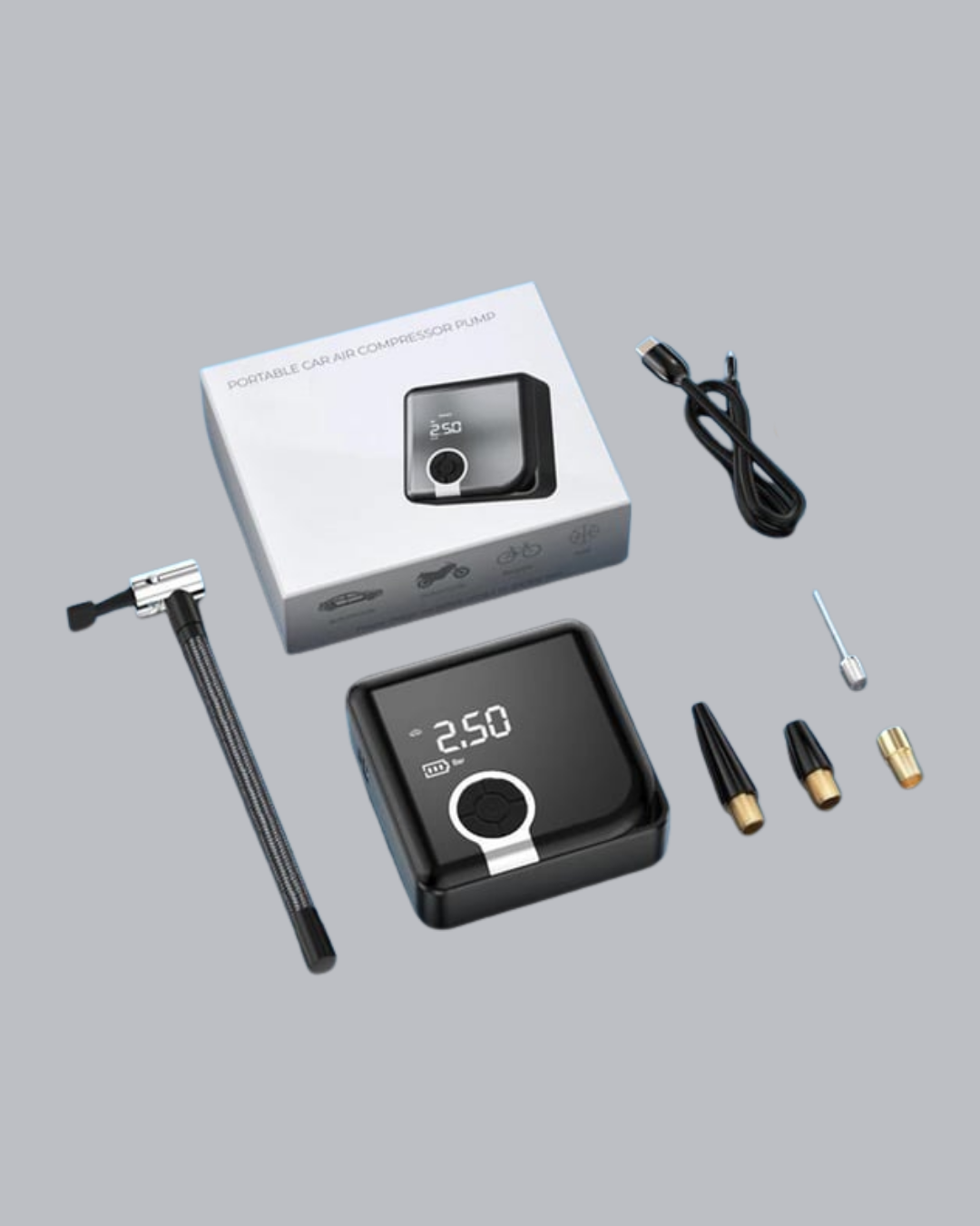 Taşınabilir akıllı hava kompresörü, güçlü motoru ve yüksek basınç kapasitesi ile her araç sahibinin ihtiyaçlarını karşılayacak şekilde tasarlanmıştır. Kompakt ve hafif yapısı sayesinde aracınızda az yer kaplar, acil durumlarda büyük kolaylık sağlar.150 PSI basınç kapasitesine sahip bu cihaz, otomobil lastiklerinden bisiklet ve motosiklet lastiklerine kadar geniş bir kullanım alanı sunar. Ayrıca toplar, şişme yataklar ve kamp malzemeleri için de kullanılabilir. Dijital ekran göstergesi sayesinde basınç değerlerini hassas bir şekilde takip edebilirsiniz. Önceden ayarlanan basınca ulaşıldığında cihaz kendiliğinden kapanarak güvenli kullanım sağlar.6000 mAh bataryası güçlü performans sunar, tam şarjla dört lastiği şişirebilir. Type-C şarj özelliği ile cihazınızı kısa sürede şarj edebilir ve tekrar kullanabilirsiniz. LED ışıkları gece veya düşük ışıklı ortamlarda kullanım kolaylığı sunarken, SOS ışıkları acil durumlarda güvenliğinizi artırır.Bu cihaz, pratikliği ve fonksiyonelliği ile sadece sürücüler için değil, aktif yaşam tarzını benimseyen herkes için ideal bir seçimdir.