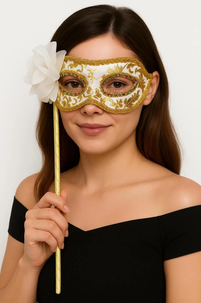 Lüks Taşlı Saplı Maskeli Balo Maskesi