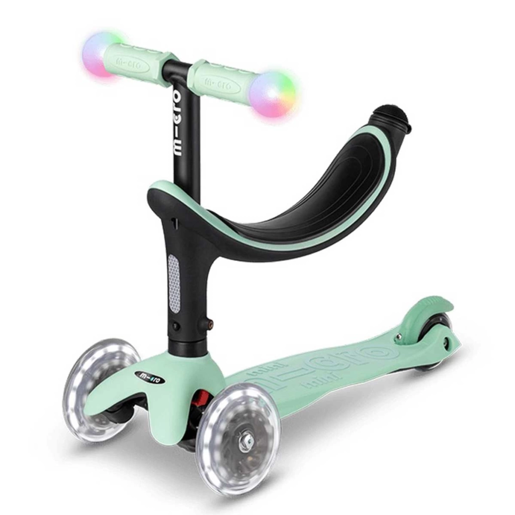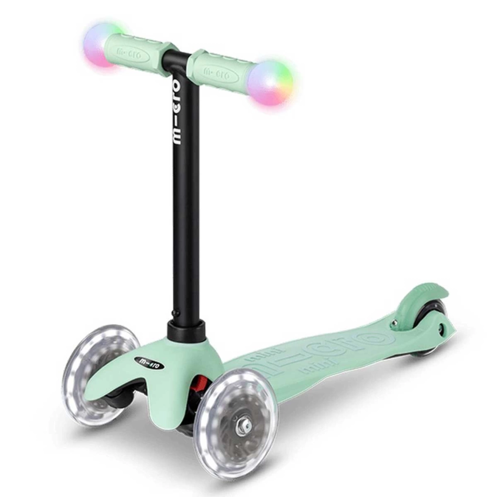 olarak Gidonda sihirli LED ampuller ve LED ay tekerlekleri ile klasik bir Mini Micro Deluxe olarak.