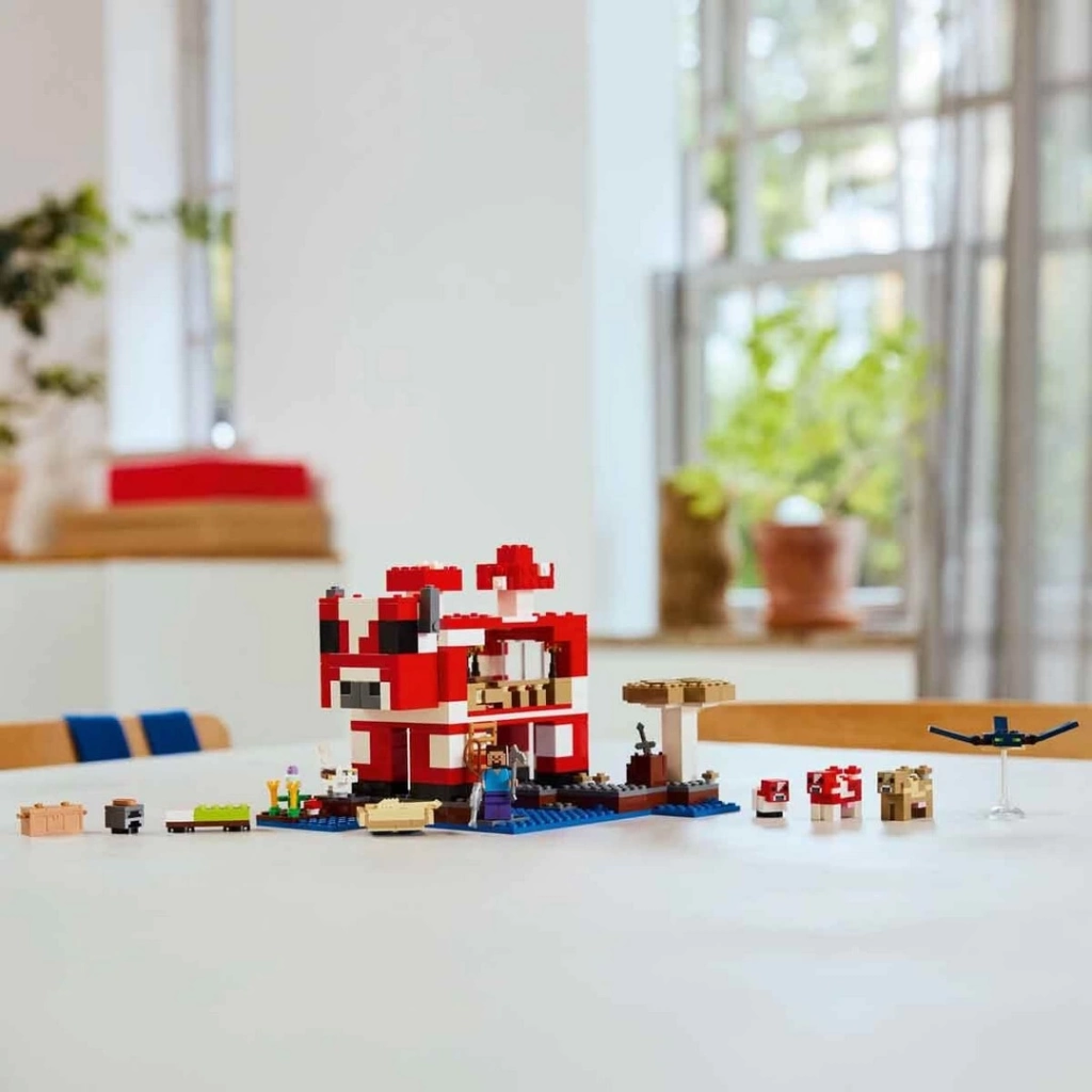 Mantar adasında geçen bu LEGO Minecraft ev yapma oyuncağı, popüler karakter Steve’in yanı sıra kırmızı bir mantar,