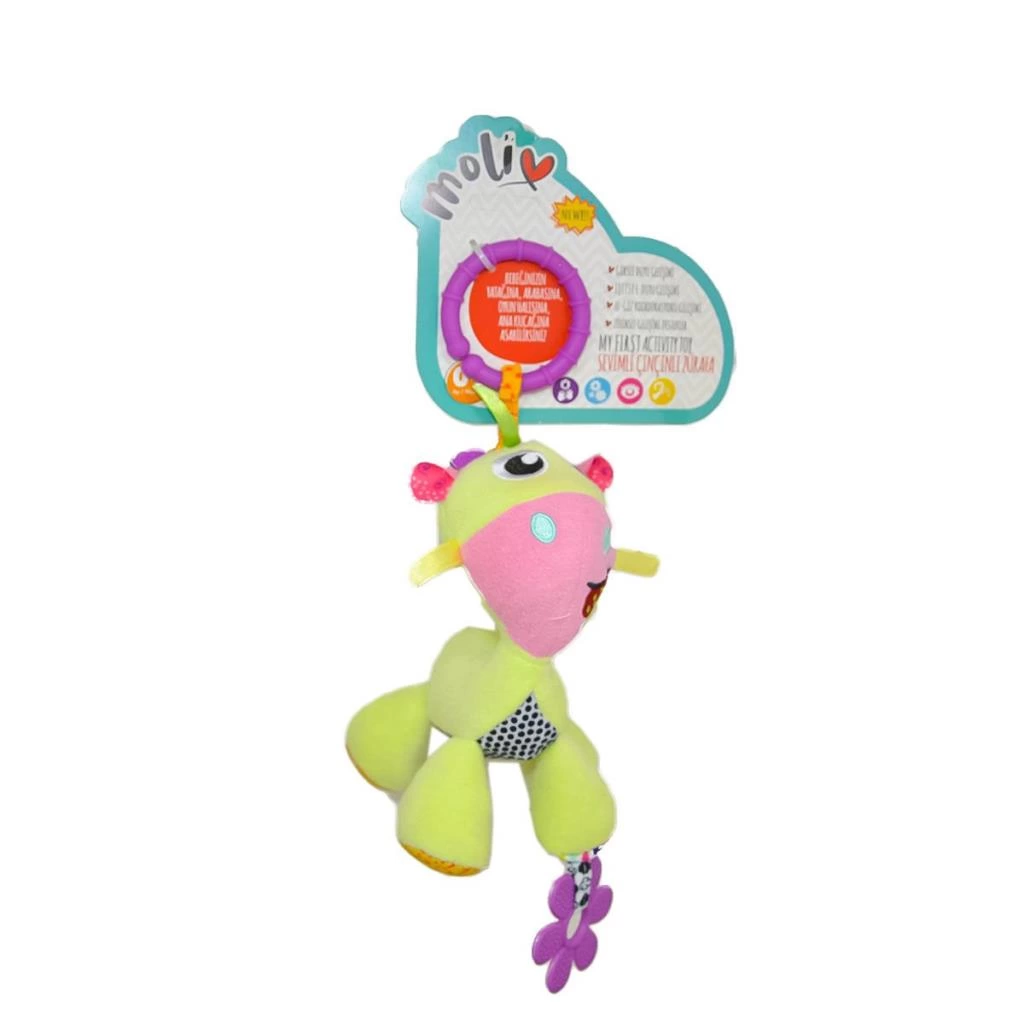 Bebeğin görme, dokunma ve duyma duyularına hitap eden çeşitli malzemelerden yapılmış, asma aksesuarlarıyla donatılmış ve farklı ses efektlerine sahip bu harika sarılma arkadaşıdır.