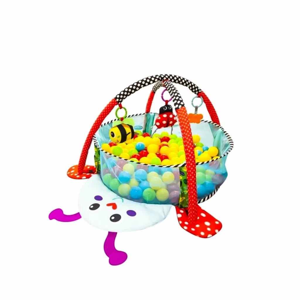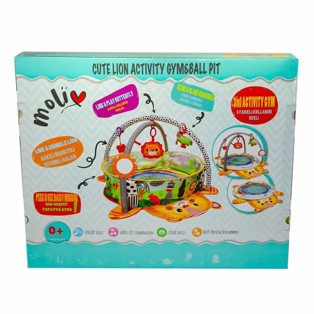 Sevimli aslanlı aktivite jimnastiği ve top havuzu ile bebekler harika, mutlu vakit geçirecek..
