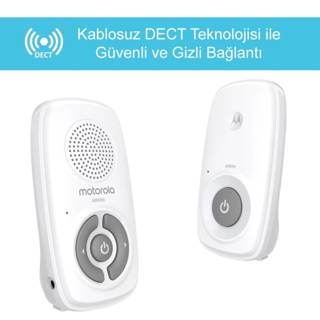Motorola MBP21 Dijital Bebek Telsizi, DECT (Dijital Güçlendirilmiş Kablosuz Haberleşme) teknolojisini kullanarak Wi-Fi ağınızı meşgul etmeden bebeğinizle bağlantıda kalmanızı sağlar.