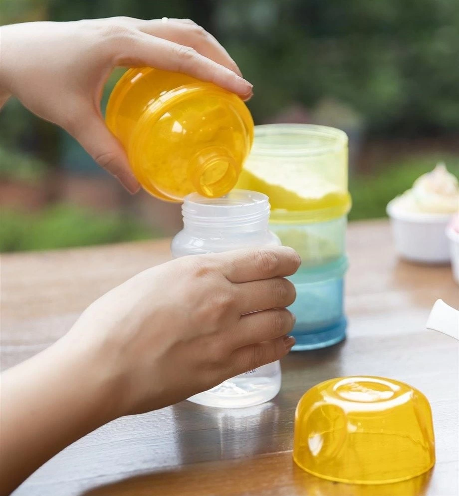 Bir kapak her kompartmana uyar, bu sayede toz mama her bölmeden kolayca biberona aktarılabilir.