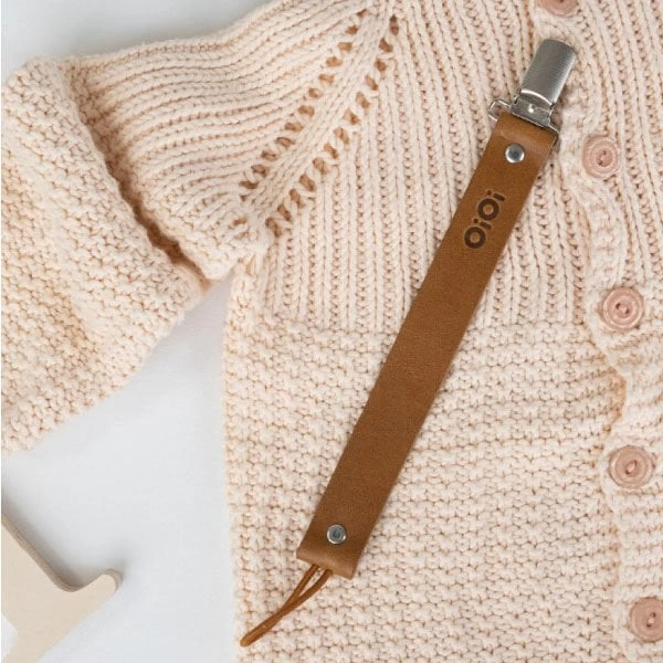 %100 doğal deri kullanılarak üretilen OiOi emzik askıları, emziklerin sık sık kaybolmasının ve kiri, tozu üzerine toplamasının önüne geçiyor.