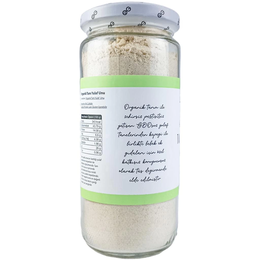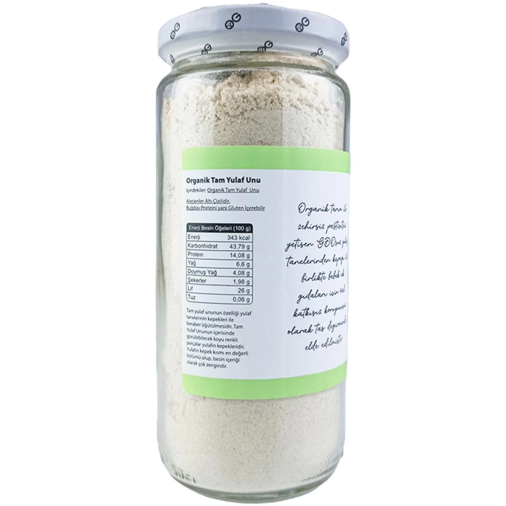 Doğal bir vitamin ve lif kaynağı olan organik tam yulaf unumuz, organik tarım yöntemleriyle ilaçsız olarak üretilmiş ve taş değirmenlerde öğütülmüştür.