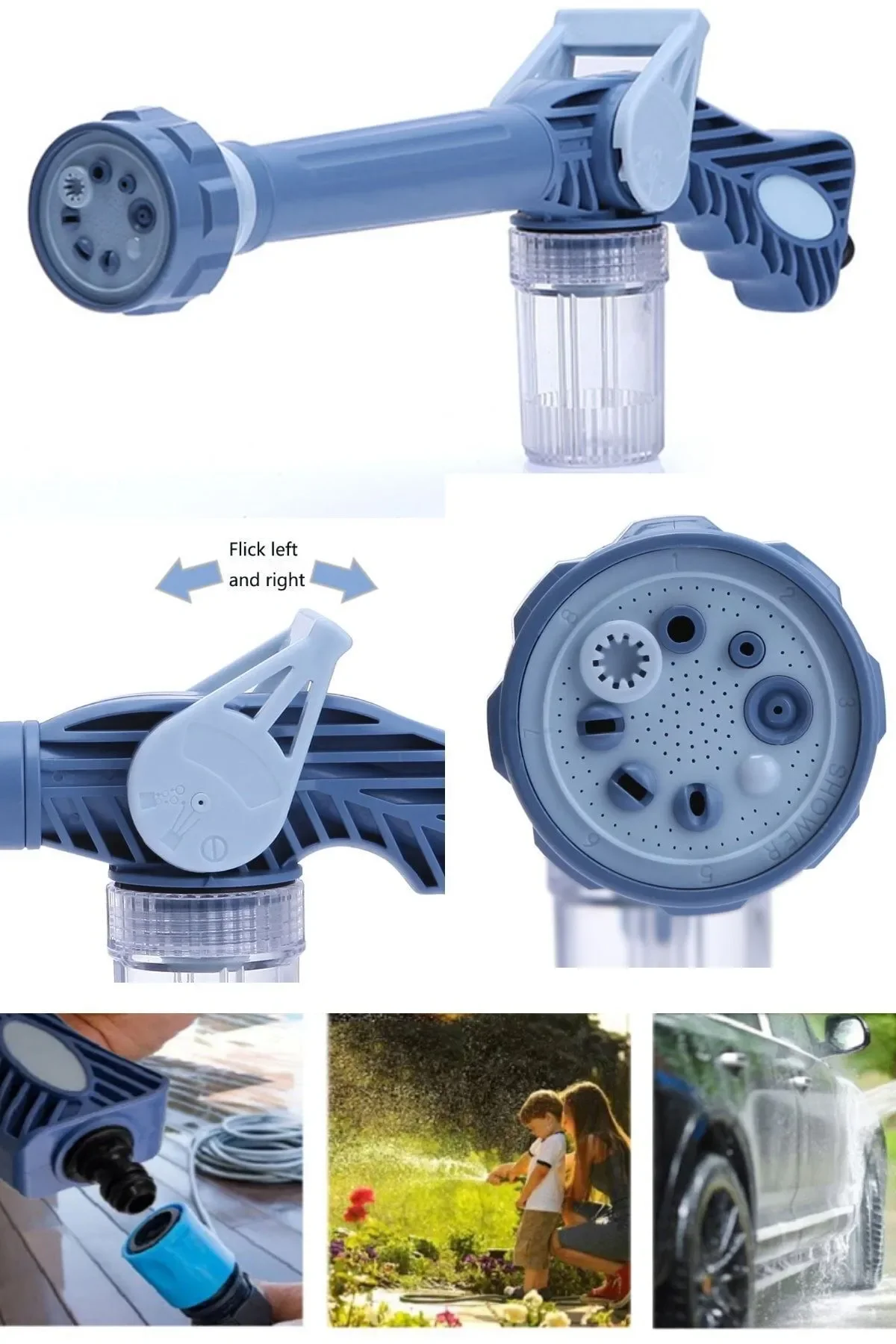 8 Fonksiyonlu Deterjan Hazneli Sulama ve Yıkama Tabancası