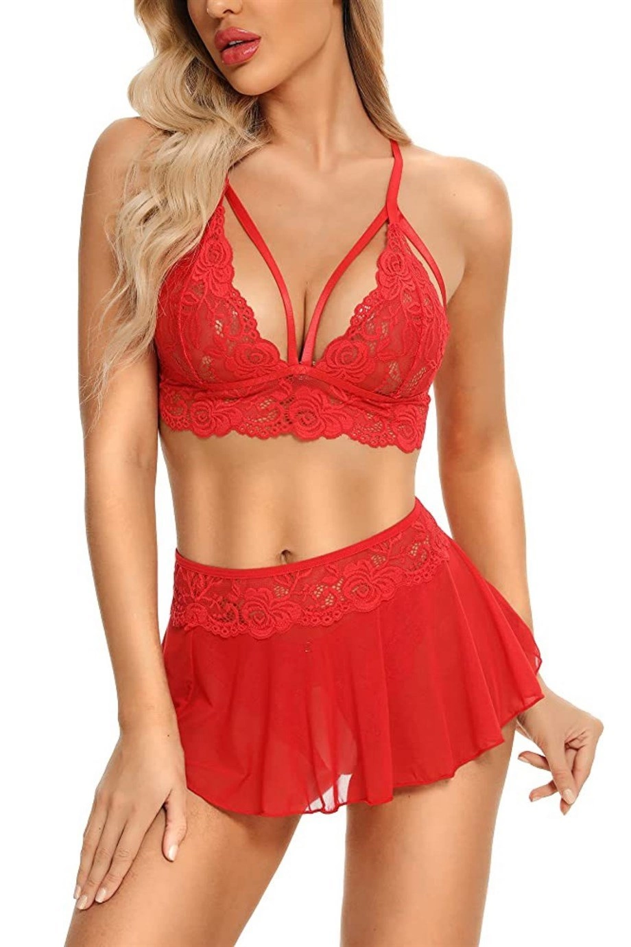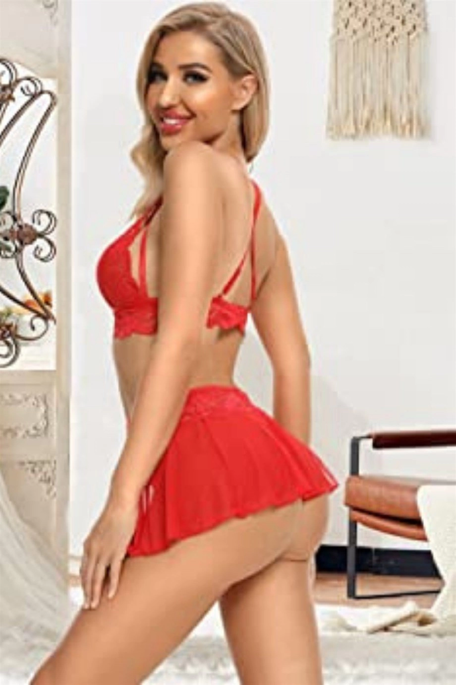 Özel Bölgesi Açık Kırmızı Etekli Bralet Sütyen Takım 16016