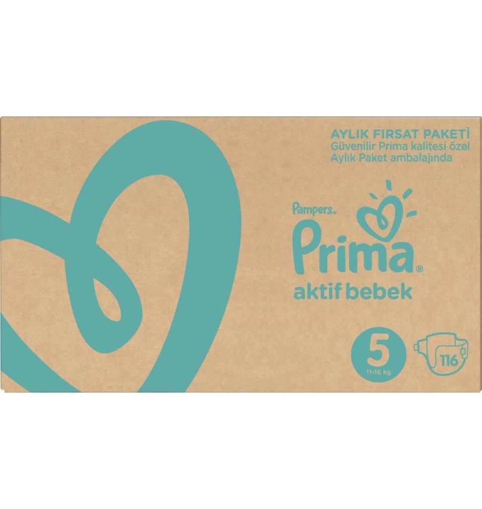 Prima Bebek Bezi Aktif Bebek 5 Beden Aylık Fırsat Paketi 116 Adet