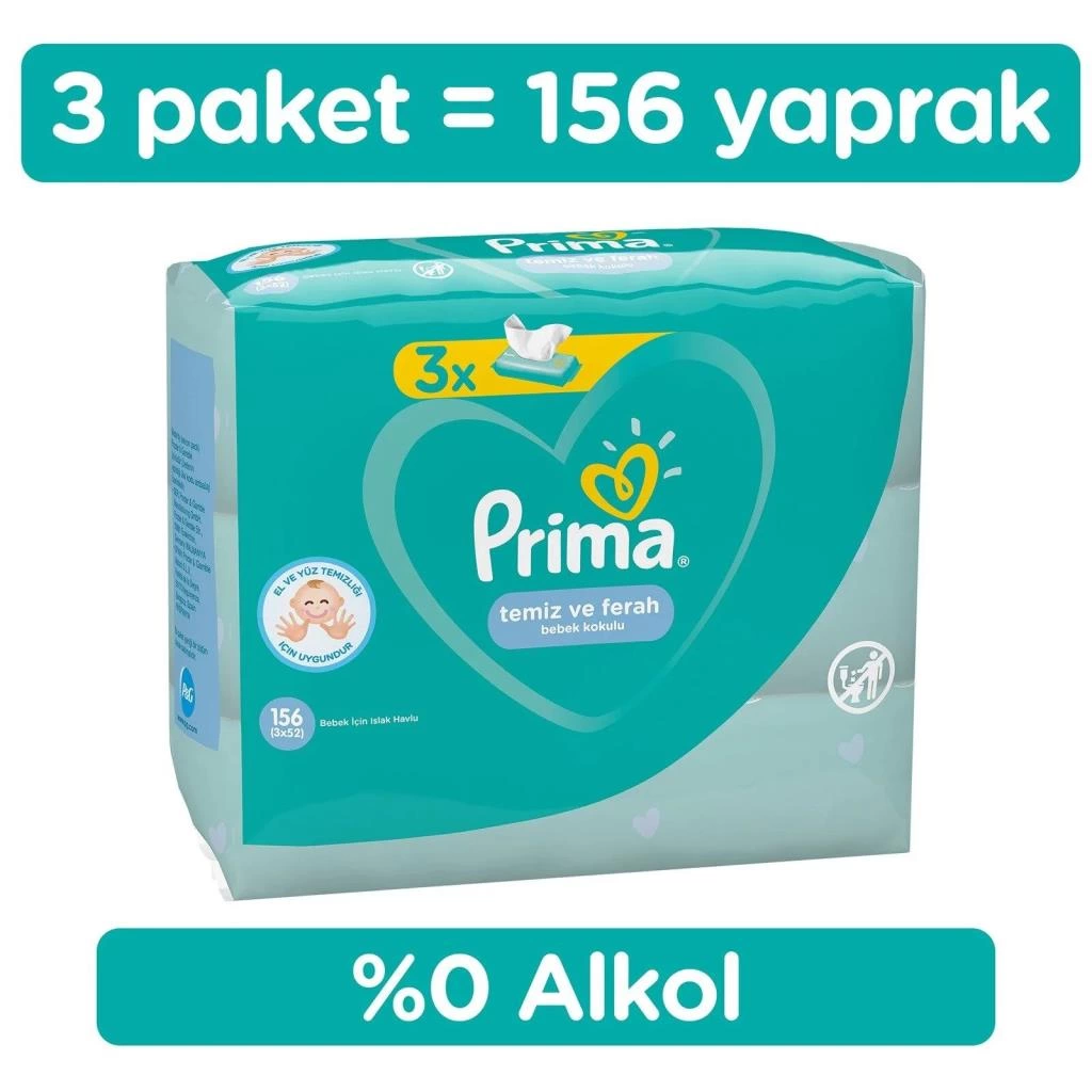 Prima Temiz ve Ferah Islak Havlu Mendil 3lü 156 Yaprak