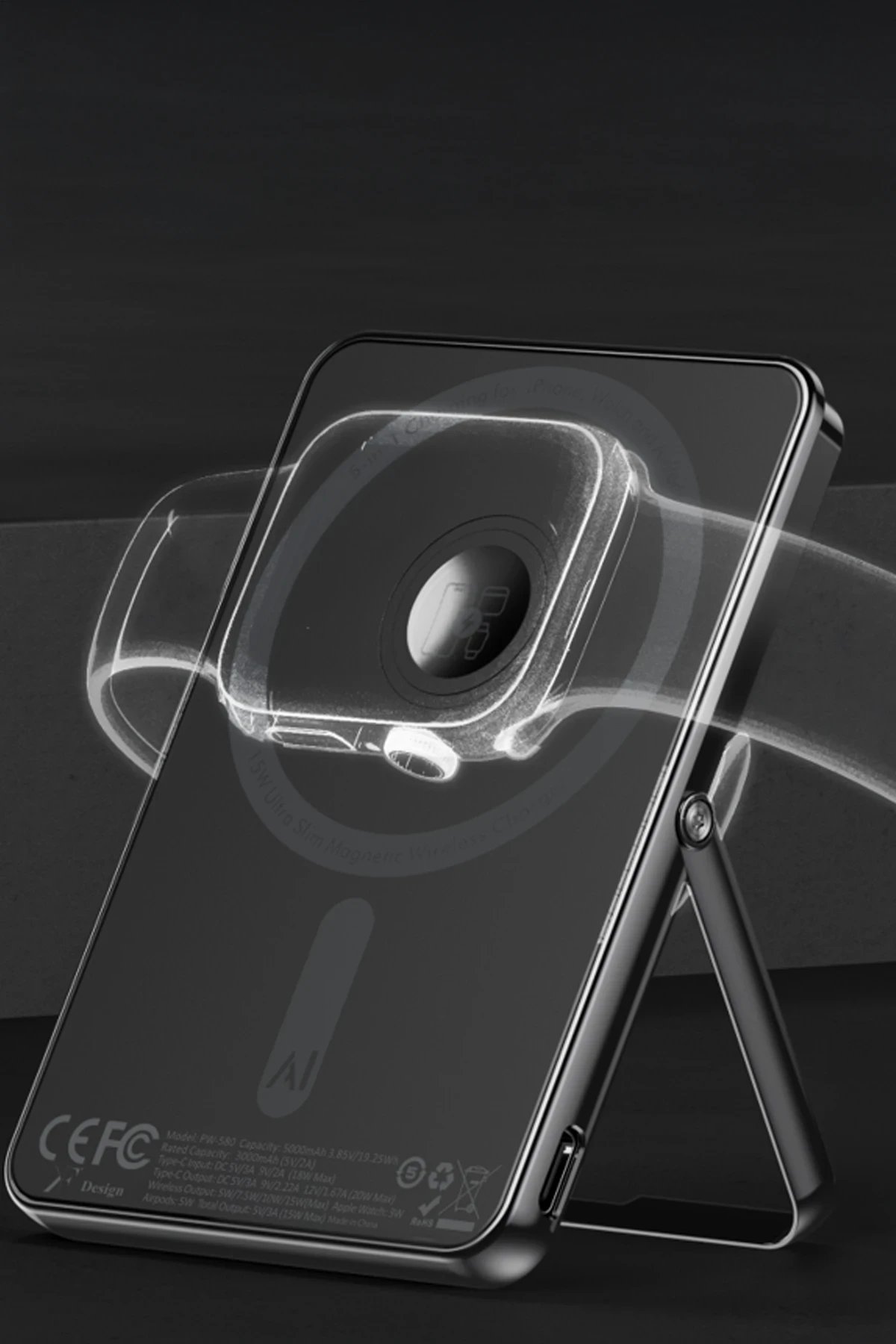 PW580 5.000 mAh 20W Type-C 15W Kablosuz Şarj 3W Saat Şarj ve 5W Kulaklık Şarj Destekli PD Hızlı Şarj Magsafe Powerbank