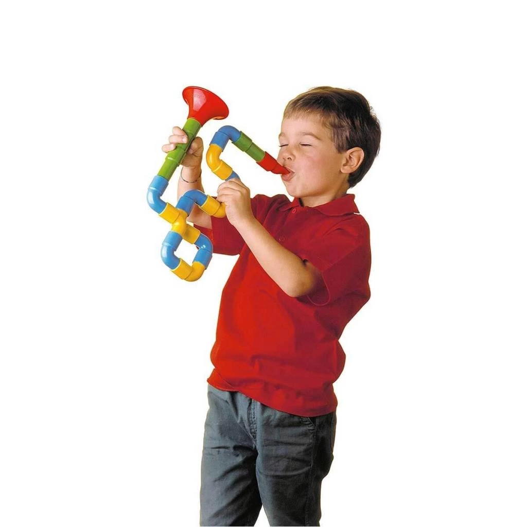 Set içerisinde; 2 farklı renkte 11 adet kavisli boru, 3 adet düz boru, 1 düdük ve 1 trompet yer almaktadır.