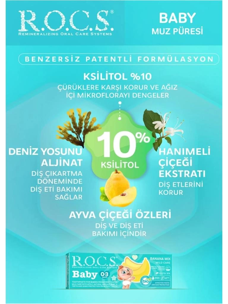 R.O.C.S.Bebek Diş Macunu Muz Püresi Tadında 0-3 Yaş 45 Gr Özellikleri;