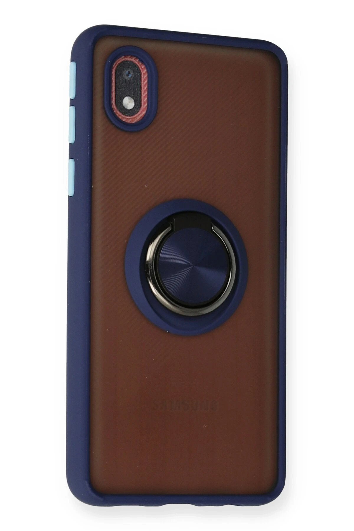 Samsung Galaxy A01 Core Kılıf Montreal Yüzüklü Silikon Kapak – Lacivert-(5796)