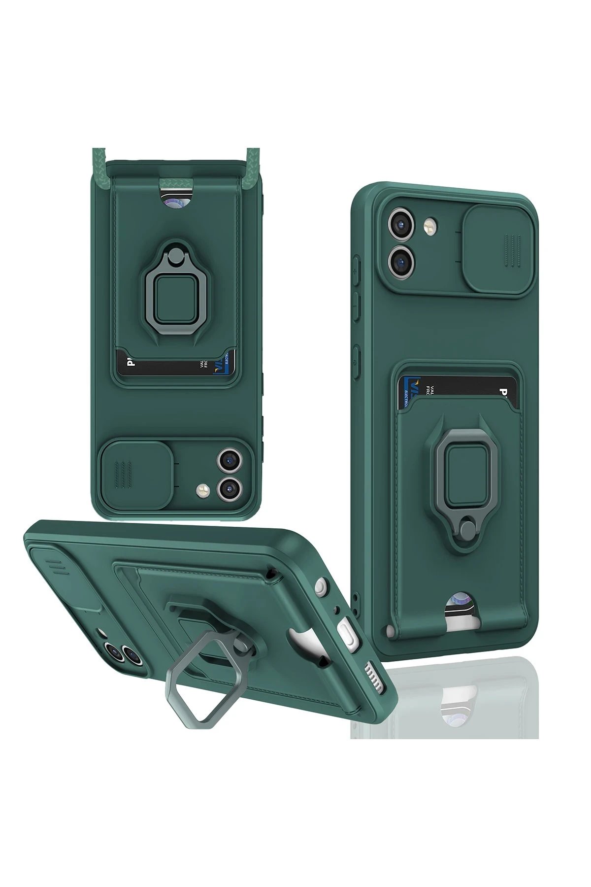 Samsung Galaxy A03 Kılıf Zuma Kartvizitli Yüzüklü Silikon – Yeşil-(5796)