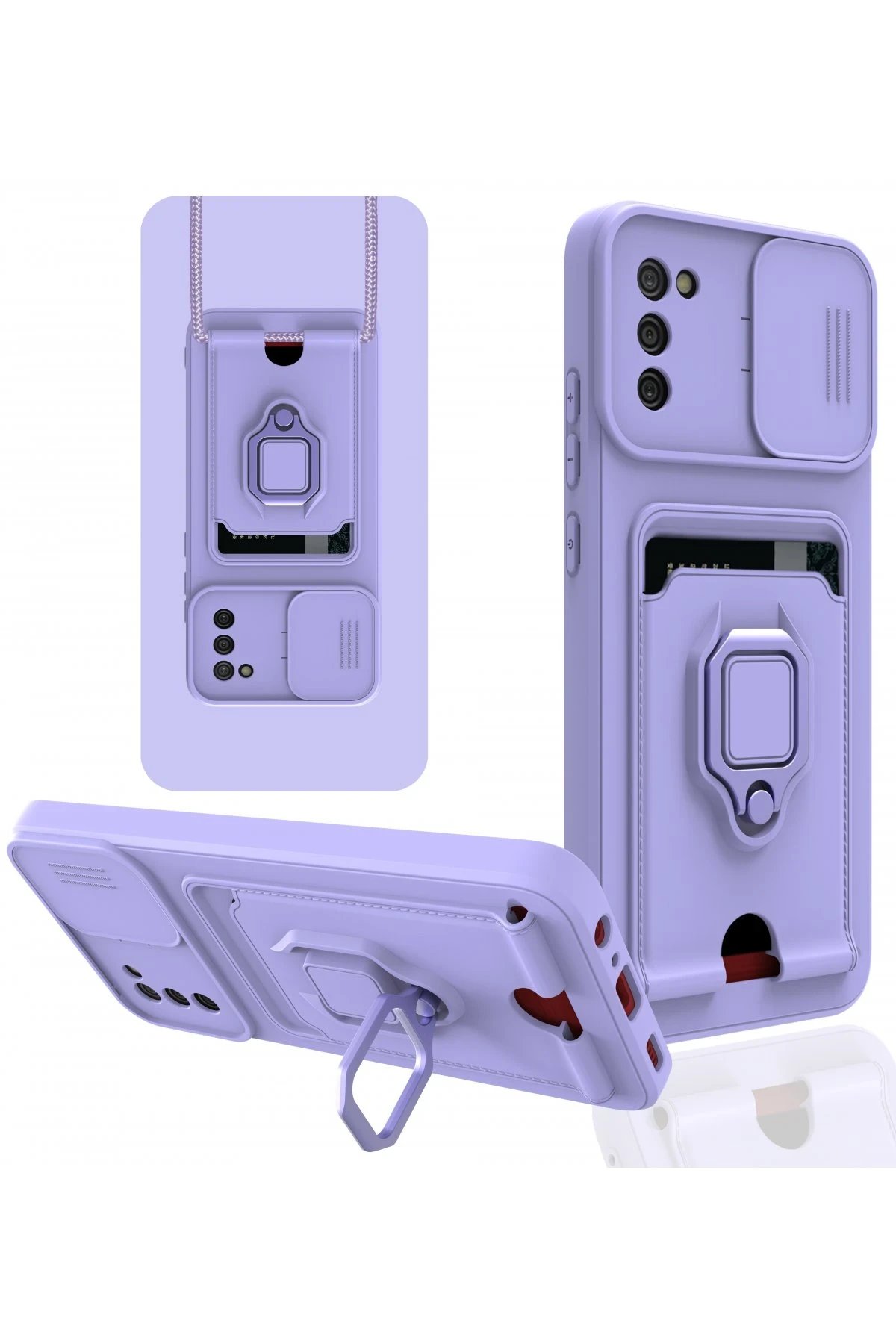 Samsung Galaxy A03S Kılıf Zuma Kartvizitli Yüzüklü Silikon – Lila-(5796)